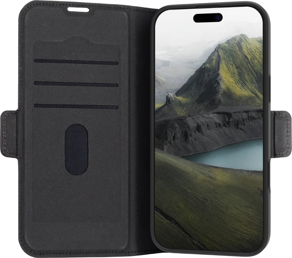 Oslo Pro ist eine stoßfeste Folio-Tasche aus recyceltem Kunststoff mit einer Oberfläche, die aussieht und sich anfühlt wie Leder. Dank der faltbaren Rückseite können Sie Videos im Querformat freihändig ansehen.