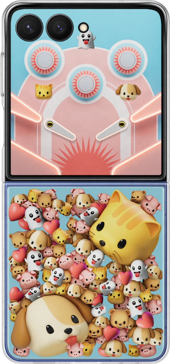 Das Flipsuit Case übernimmt das Styling deines Galaxy Z Flip7 und lässt es noch besser aussehen. Es besteht aus einem Rahmen und einer Motivkarte mit integrierten LED-Effekten. Sobald du die Karten einlegst, wird der passende Sperrbildschirm auf dem Frontdisplay angepasst. Und für die kleine Gaming-Pause unterwegs: Einfach den Sperrbildschirm hochwischen und ein Flipperspiel direkt auf dem Frontdisplay spielen, ohne deine Smartphone zu öffnen.
